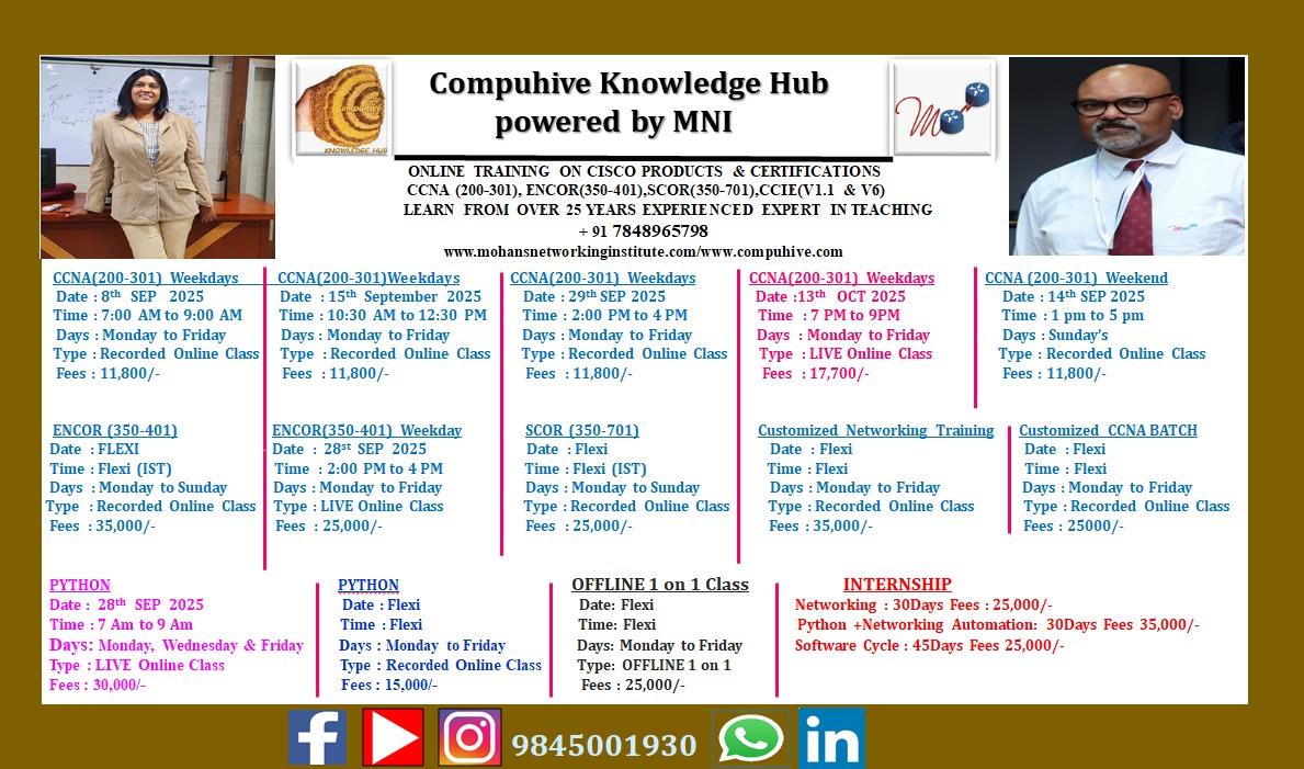 It gives me immense pleasure to talk about Mohan’s Networking Institute. As any body who joins the institute will have an excellent learning opportunity Mohan Sir’s Networking Fundamentals are too good with immense gratitude. I thank everyone from MNI for there willingness share knowledge on networking Concepts.